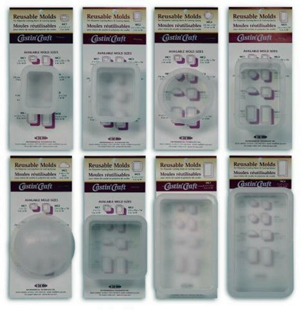 Re-useable Self releasing polypropylene molds for use with Castin'Craft Clear Polyester resin and Easy Cast Clear Casting Epoxy. Use Castin'Craft Mold Release/Conditioner to clean and condition molds for longer use. Manufactured by Environmental Technology, Inc
