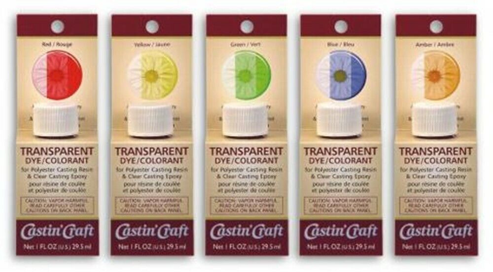 These universal dyes can be used with Castin’Craft Clear Polyester Casting Resin, Envirotex Lite, Ultra-Glo, Crystal Sheen and Easy Cast Clear Casting Epoxy.