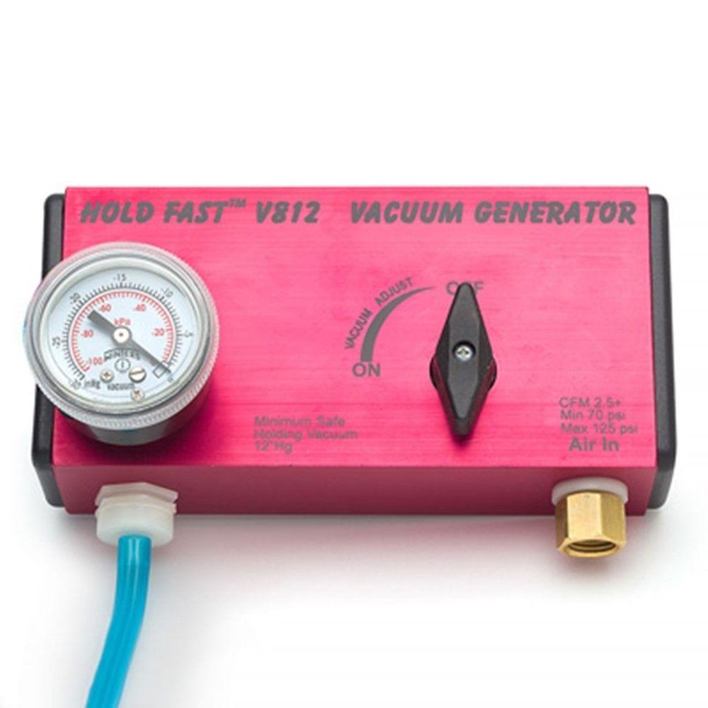 - The Hold Fast⢠V812 Vacuum Generator features a built-in regulator that allows you to adjust the incoming pressure from the air supply, eliminating the hassle of readjusting the air compressor when vacuum chucking.