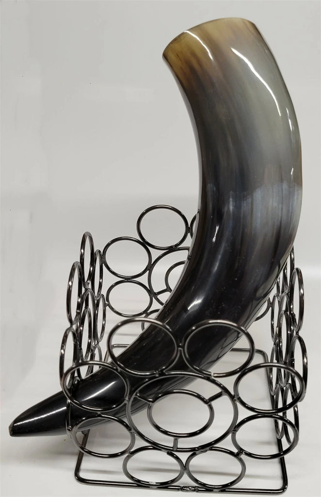 Buffalo Horn w a 5"x5" Square Dark Stand 9"